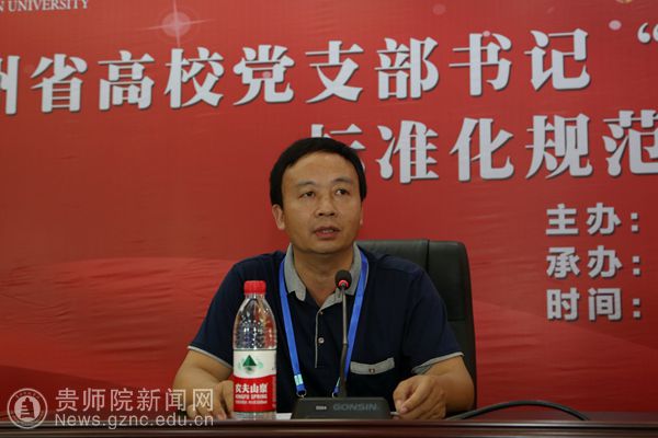 专题教学结束后本次培训班举行了结业仪式。首先,学员代表贵阳中医学院马克思主义学院副院长暨教工党支部书记刘维民、安顺学院特殊教育学院副院长暨教师党支部书记王玉、兴义民族师范学院党委组织部部长潘勇、黔南民族幼儿师范高等专科学校旅游文化系党支部书记王昌乾结合基层党组织实际工作经验作了交流发言。