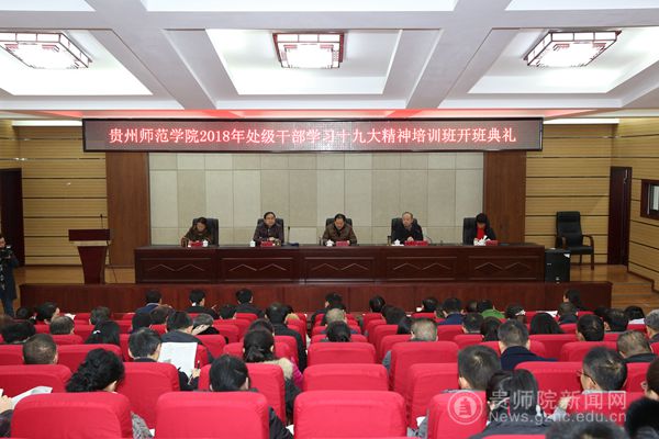 在开班典礼上,石培新强调,本次培训学校党委落实党的十九大提出的“建设高素质专业化干部队伍”要求的一项重要举措。这次培训的重点是学习、领会、贯彻党的十九大精神和习近平总书记在贵州省代表团重要讲话精神,这既是全校上下当前和今后一个时期的重要政治任务,也是我们每位干部提高政治素养和工作水平、更好地肩负起党和人民交付的历史责任必然要求。他希望参训干部能牢记“打铁必须自身硬”、“众人拾柴火焰高”、“咬定青山不放松”、“为官避事平生耻”这四句话,通过认真的学习思考,取得新的收获、得到新的提高。随后,他向所有参训人员提了三点要求,一是要大家正确处理好工作与学习之间的关系,做到“两不误,双促进”;二是要大家处理好集中学习、分组讨论和个人自学的关系,认真学习,共同提高;三是要大家处理好学习与思考的关系,要结合自己的工作实践,深入研究工作,把学习的内容转化为思考的成果,理清工作思路,提出有效的工作措施,争取在培训班结束后产生一批高质量的心得体,使我们的理论素养、思维水平、工作能力得到进一步的提高。