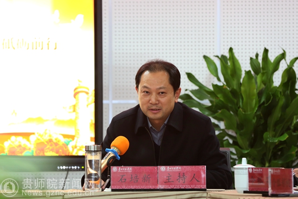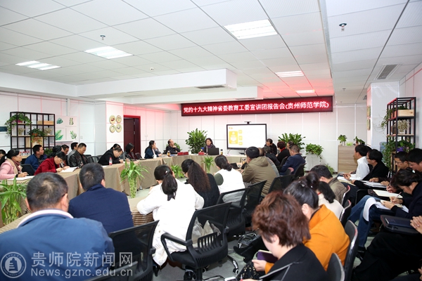 本网讯 11月29日下午,省委教育工委宣讲团成员、贵州师范大学党委书记韩卉到我校作党的十九大精神宣讲报告。全体校领导、基层党委书记、学院院长、部门主要负责人参加会议。校党委书记石培新主持宣讲会。