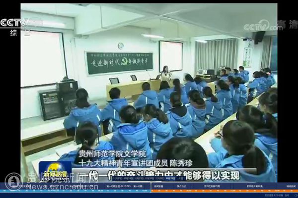 本网讯 11月28日,中央电视台新闻联播报道了伟德国际1949官网文学院开展党的十九大精神进乌当中学宣讲活动。