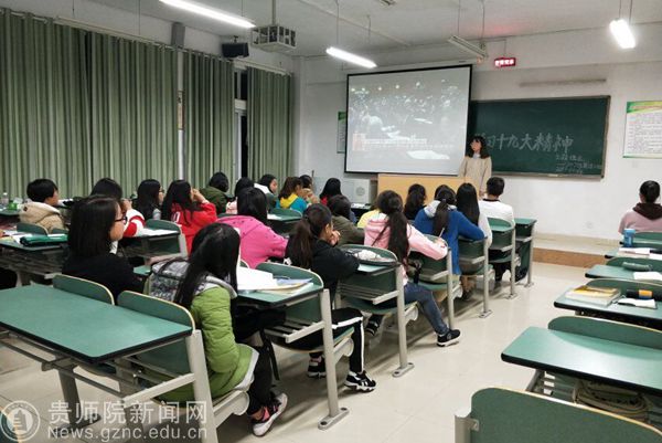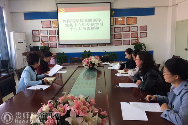 开专题论坛,畅谈十九大。10月17日起,各党支部通过QQ群、微信等载体,就十九大报告内容及教育、住房、脱贫等问题纷纷上传了相关文章,学习文章达40余篇。10月31日上午,外国语学院党政领导、党委中心组开展专题学习,深入学习十九大报告。10月23日,学院在明义楼525教室组织全体学生干部学习党的十九大精神。11月13-17日,各党支部以十九大报告、新党章、习近平新时代中国特色社会主义思想为专题开展了三场讨论学习,并撰写相关学习感悟30余篇。