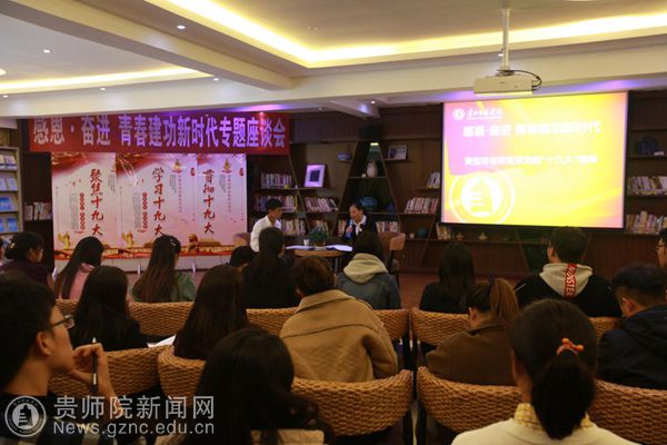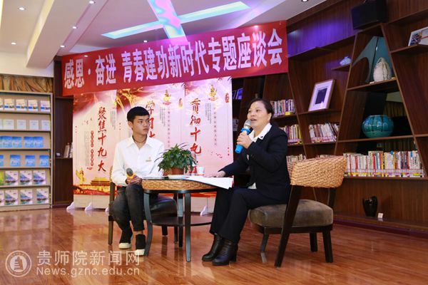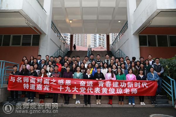 座谈会上,首先由主持人敖自江介绍了黄俊琼老师的先进事迹并说明了召开本次活动的目的及意义。黄俊琼老师是十九大代表、贵州省优秀乡村教育工作者。为了加强青年学生对党的十九大精神更加深刻、全面的理解,以习近平新时代中国特色社会主义思想为指引,校团委特邀黄俊琼老师举行了此次座谈会。