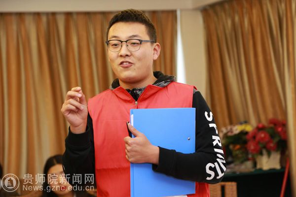 会议第二项,黄俊琼老师结合自身参加十九大与学习十九大报告的感悟做了分享。她首先为大家介绍了十九大报告提出的四个新:新的时代、新的矛盾、新的思想、新的征程。她鼓励大家要把握新时代,积极奋进,在中国梦的广阔舞台上书写人生的辉煌篇章。结合十九大与习近平总书记面对面的经历,她强调,习近平总书记三次见了我们贵州代表团,我们感到非常的幸福,我们要感恩习近平总书记的关爱。十九大报告中指出要特别扶持与帮助农村基础教育,这是习近平总书记对基础教育的重视和农村教师的关爱。最后,她还向大家传授了她几十年参加教育工作的宝贵经验,并期望在座的优秀青年学子们要关心爱护孩子,要鼓励孩子多读书,拓宽知识面。她还向同学们分享了她与习近平总书记的交流的细节、感受和体会。最后,她勉励在座的青年学子;感恩奋进,大胆地追求自己的梦想。同时她表示欢迎优秀青年学子毕业后投身于农村基础教育中。她时而激动、时而深情,她的分享饱含着对习近平总书记的坚定拥护、对青年学子的深切期望。在近一个小时的讲话中,会场内无不洋溢着青春的激情,与会代表们通过黄俊琼老师的讲话受到了精神与思想的洗礼,更坚定了感恩奋进的决心与意志!分享过程中黄俊琼的讲话几度被热烈的掌声打断,与会代表们认为黄俊琼老师的讲话深入浅出,既有高度又贴近生活,既有思想教育意义又能够指导生活实践、助力青年的发展进步。