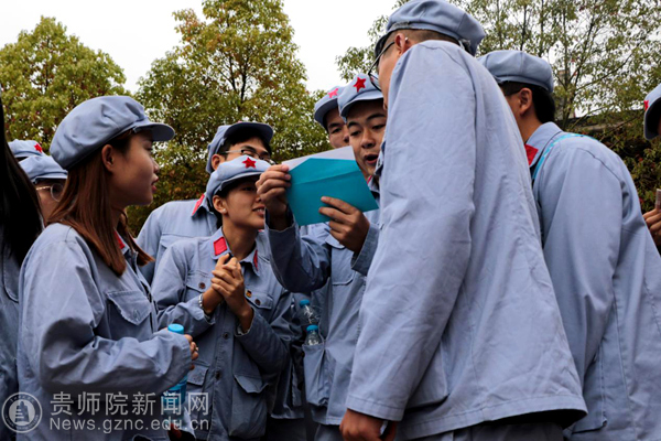我校团学干部于中午抵达瓮安猴场。首先,老师介绍了此次活动的整体安排,并把参与活动的人员编排为“红军一队”、“红军二队”。接着,秦红平开展了猴场会址红色教育的宣讲活动。他深入、全面地为参与活动的人员解读了猴场会议的历史和意义,并号召同学们通过此次猴场红军教育活动,深入学习习近平新时代中国特色社会主义思想,担当时代的责任,心怀感恩,矢志奋进。随后,我校团学干部们在解说员、老师的带领下分别参观了猴场会议纪念馆、猴场会议会址。之后,队员们集合在猴场会议会址的前广场上,两队的老师分别下发了精心设计了党的十九大、猴场会议及长征相关知识要点的任务卡。我校团学干部们也正式踏上了红军征程的考验之路。在毛泽东行居,队员们瞻仰了伟人的塑像。在草堂安抚司署前,队员们接受了“敌人来了”的考验。在中国最大的砖木结构戏楼“晴雨双面大戏楼”,队员们体悟到了中国传统文化的魅力。