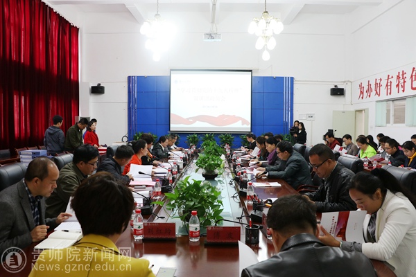 本网讯 11月7日,我校在第一会议室召开“学习贯彻党的十九大精神”宣讲团动员会,对党的十九大精神宣讲工作进行动员部署,校党委副书记令狐彩桃出席动员会,动员会由宣传部部长邹晓青主持。