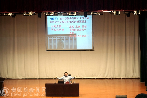 我校团委邀请的贵州省政府参事、中共贵州省委政策研究室原副主任、秘书长吴祖平以“不忘初心跟党走·奋力实现中国梦”为主题给我校团支书讲解了“一学一做”教育实践活动和习近平总书记的系列讲话精神。他详细分析了2017年5月3日习近平总书记在中国政法大学考察时的讲话,强调青年一代的理想信念、精神状态、综合素质,是一个国家发展活力的重要体现,也是一个国家核心竞争力的重要素质,并号召青年朋友要立志干大事,而不是当大官,要立志为人民,而不是只顾个人小家,不忘初心跟党走、奋力实现中国梦。现场气氛热烈、掌声不断,激发了学员们的爱国之情。