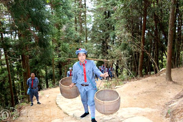 下午的现场教学和体验式教学地点在黄洋界和挑粮小道。1928年3月30日,这里打响了著名的黄洋界保卫战,英勇的中国工农红军以不到1个营的兵力打退了敌军4个团兵力的疯狂进攻,创造了我军以少胜多的首个战绩。学员们身临其境,依稀听到当年隆隆炮声,也更深刻地体会到了当年战士们的勇气和忠烈。随后,学员们一起体验了红军挑粮小道。小道难行,难在路程遥远,从山上到山下,垂直距离足足有3100米;难在山路崎岖,路无屏障危险重重,坡陡而毫无平地可歇息。学员们顶着烈日,在崎岖坎坷的山间小道上一路前行,体会着不畏艰难的共产党人的信念,也对自身坚定理想信念,克服重重困难打下了坚实的思想基础。
