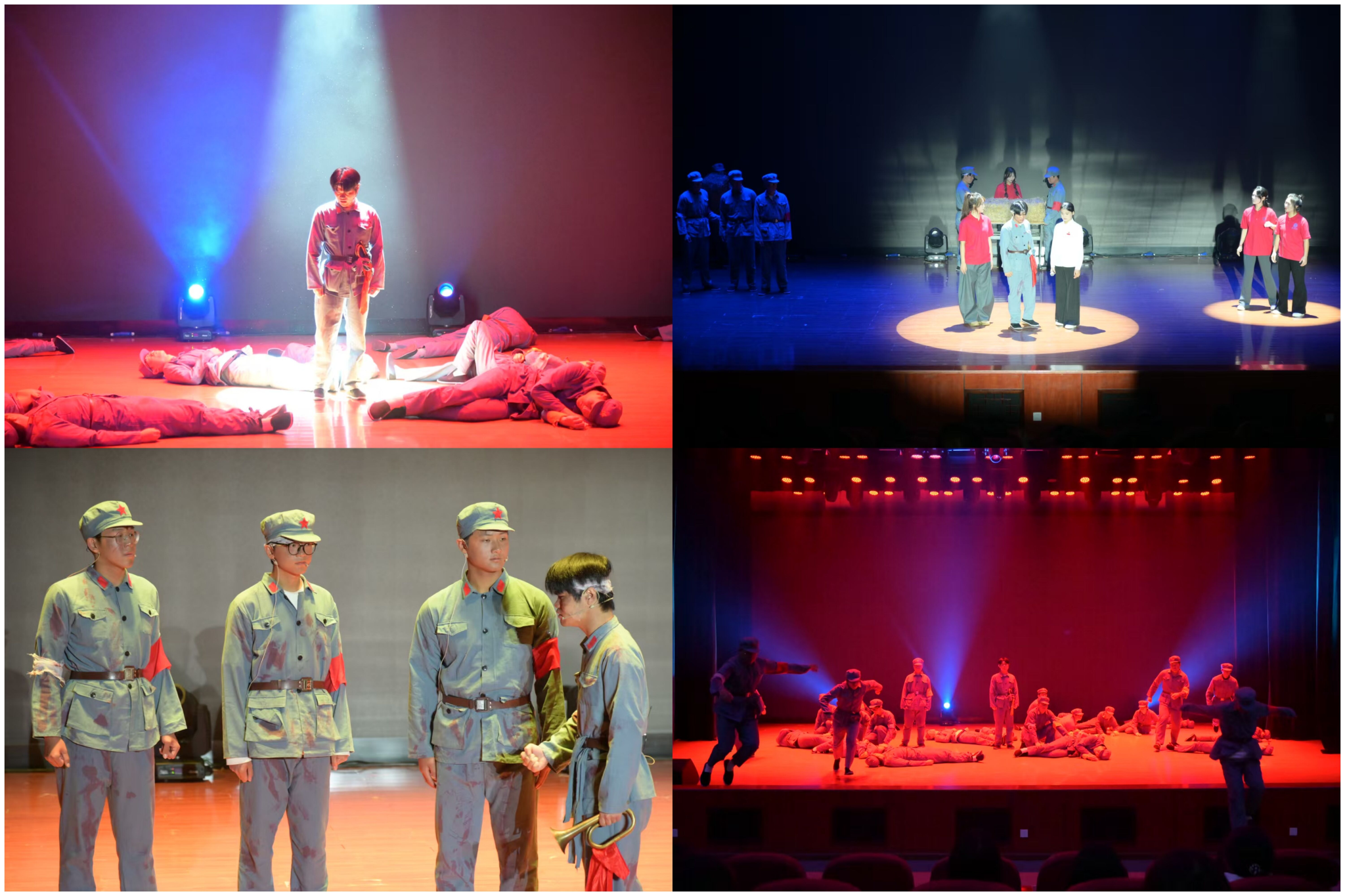 本次主题团日活动采用沉浸式舞台剧《困牛山下的课堂》贯穿全场,该剧目为文传学院原创剧目,起源于伟德国际1949官网文学与传媒学院与苏州大学文学院两校携手在困牛山红军学校开展暑期“三下乡”社会实践活动。剧中,两校学生代表互动交流,穿插展示了缠花技艺、书法创作、剪纸艺术等,生动展现了中华优秀传统文化的独特魅力,文传学子传承文化、沟通中外的使命担当,体现了两校跨越千里携手传承红色基因、推普助力乡村振兴的友谊。