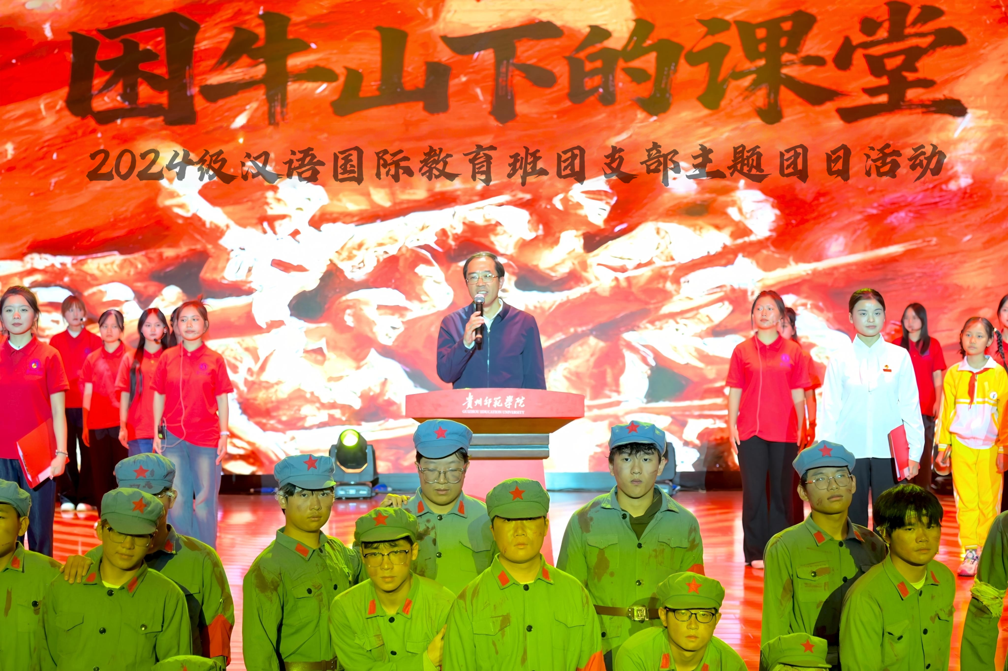 战勇充分肯定了本次主题团日活动的创新形式和教育意义,指出这是一场历史的追寻,更是一场精神的洗礼。战勇从三个方面对全体青年提出殷切期望:第一,要深刻体悟困牛山精神,筑牢“文以载道”的信仰之基。他勉励文传学子要传承好这份厚重的精神财富,用传播的语言和文化,“讲好中国故事中最动人心魄的忠诚篇章”。第二,要系统理解红军长征精神,把握“薪火相传”的历史脉络。他强调,贵州的长征历史是取之不竭的精神富矿,希望同学们“用你们的笔、你们的镜头、你们的声音,去再现这段历史,让发生在贵州的红色故事焕发新的时代光彩”。第三,要胸怀世界和平发展事业,担当“文明互鉴”的时代使命。他指出,汉语国际教育专业的学子是“中外文化交流的使者”,要树立宏大的历史观和全球视野,懂得“所传授的不仅仅是汉字的写法、汉语的语法,更是语言背后所承载的中国人民追求独立解放、热爱和平正义的价值理念”。战勇希望文传学院全体青年从这场精神之旅中汲取无穷力量,努力成为“中华优秀传统文化的忠实继承者、革命文化的热情传播者、社会主义先进文化的积极践行者”。