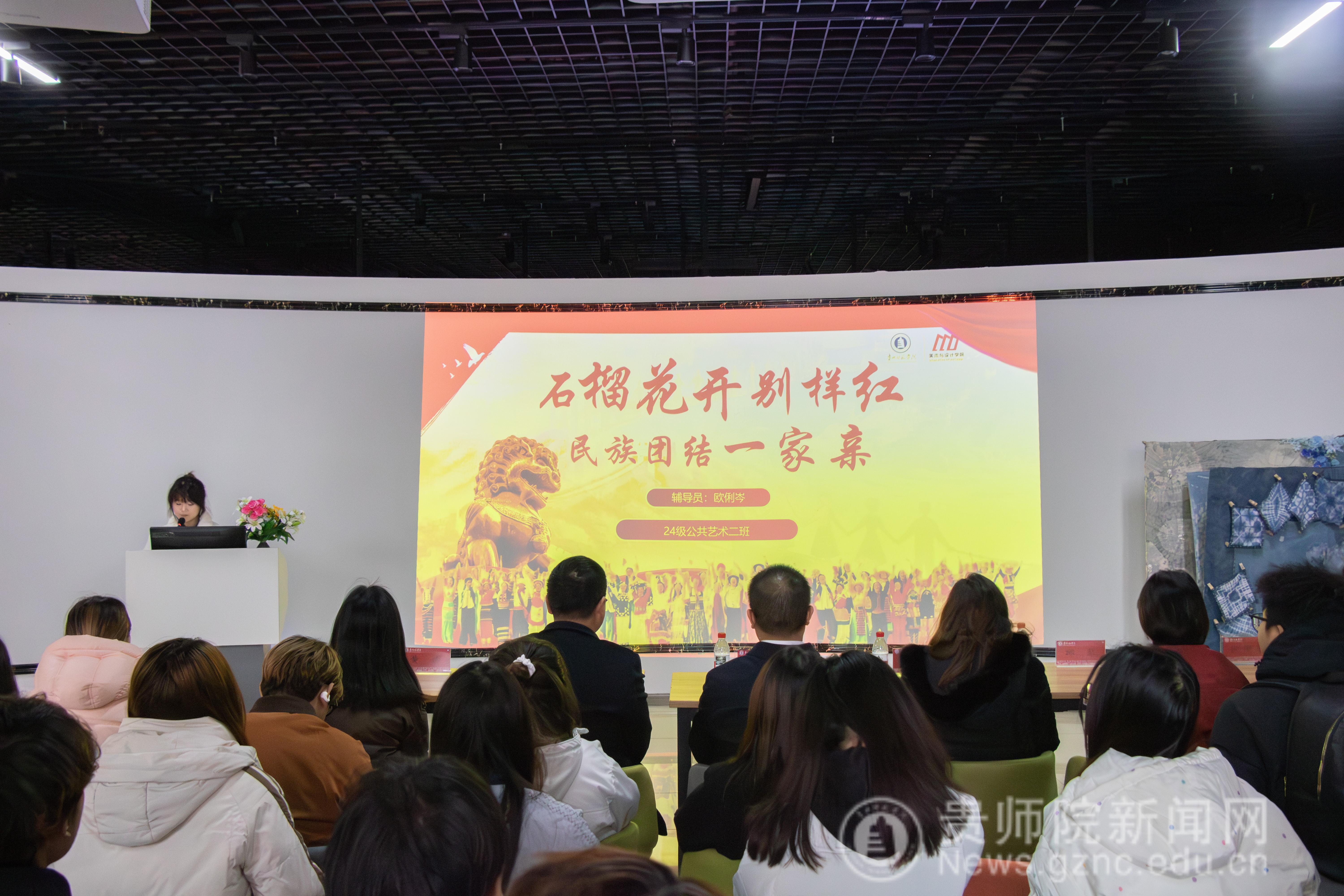 罗光杰对本次活动给予充分肯定并围绕“民族大团结 共画同心圆”主题提出三点寄语:一是筑牢思想根基,深化团结共识。希望同学们持续学习领会习近平总书记关于加强和改进民族工作的重要思想,牢固树立休戚与共、荣辱与共、生死与共、命运与共的共同体理念,不断增进对中华民族共同体的认同。二是凝聚专业力量,绘就文化画卷。要充分发挥美术与设计学科专业特色,以手中之笔、心中之创意,生动展现各民族文化的多彩魅力,推动中华优秀传统文化创造性转化、创新性发展,做民族团结进步的宣传者与践行者。三是践行青春担当,共育石榴花开。期待同学们将活动中感悟的情谊、激发的热情转化为日常行动,像石榴籽一样紧紧相拥,互学互帮、共同成长,将来以专业所学服务社会、建设家乡,为推进中华民族共同体建设贡献青春力量。