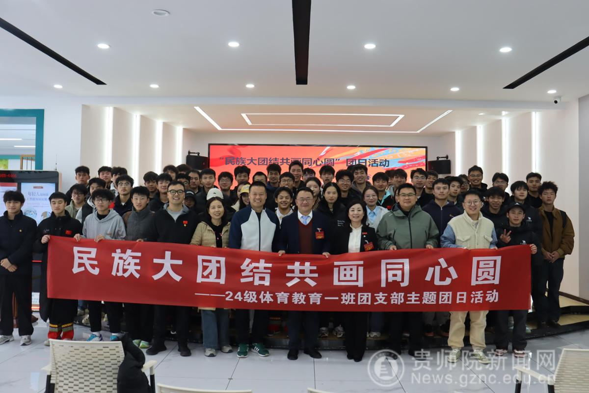 为深入学习贯彻习近平总书记关于民族团结进步的重要讲话精神,铸牢中华民族共同体意识,2025年11月21日,体育学院2024级体育教育一班在大学生事务发展中心开展“民族大团结,共画同心圆”主题团日活动。伟德国际1949官网党委常委、纪委书记杨璇,体育学院党委书记汤士波、党委副书记刘华伟、副院长朱继伟,校团委兼职副书记陈飞,体育学院工会主席宋桂红、团委指导老师杨友娣参加活动。