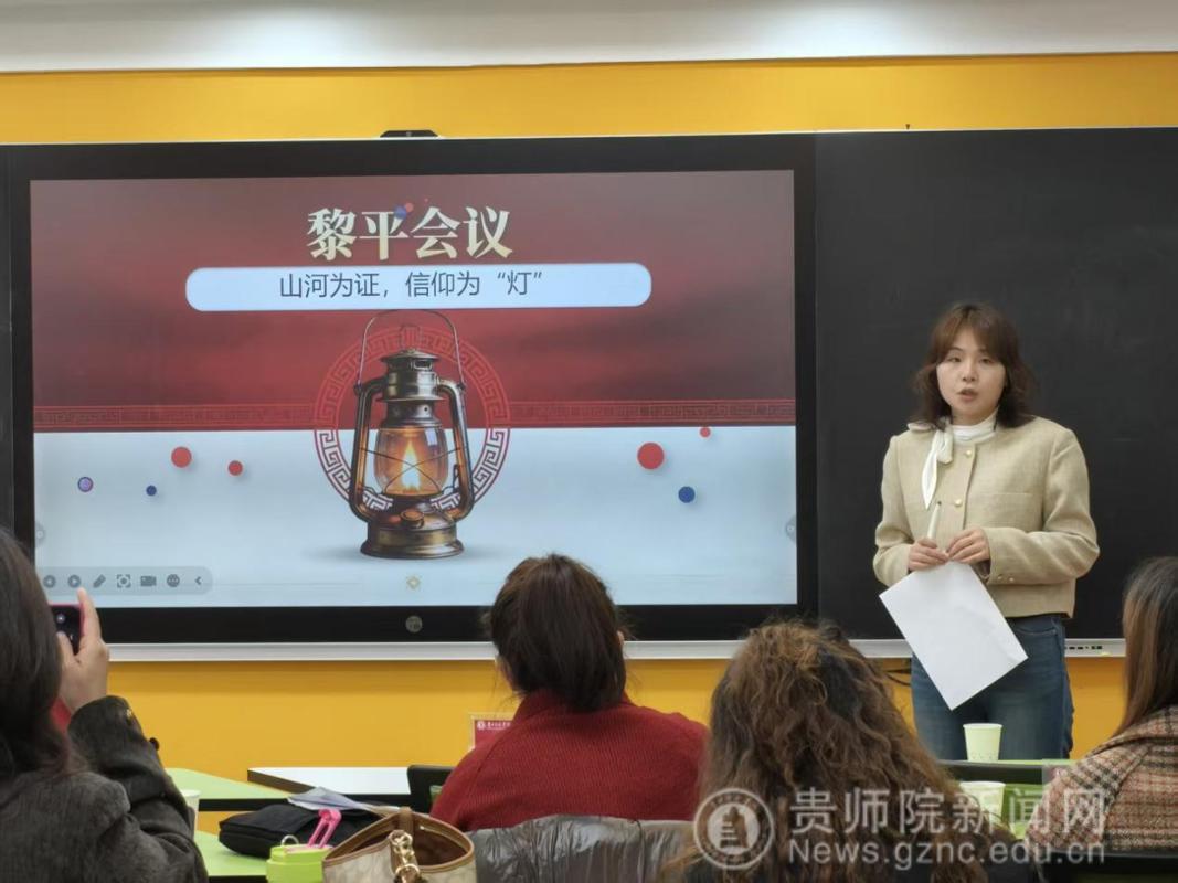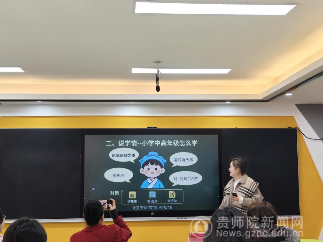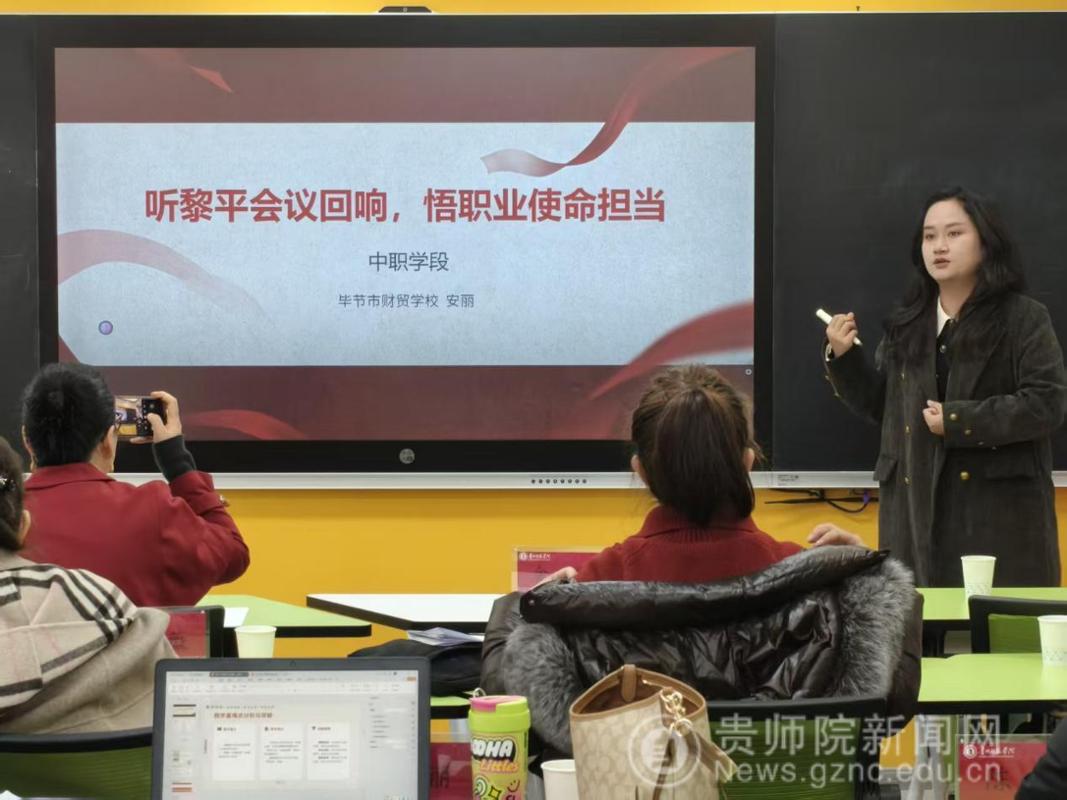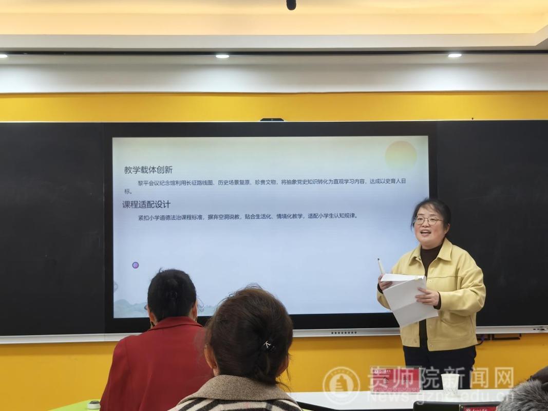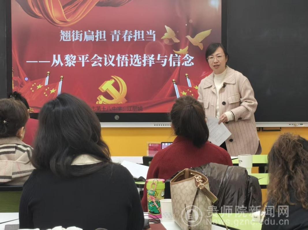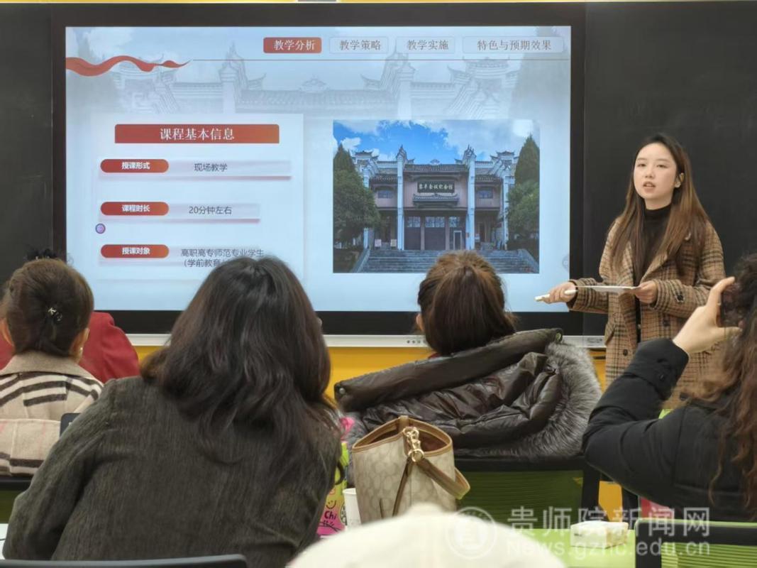 备课会伊始,马克思主义学院院长金凤教授就本次集体备课会的目的、意义、主题进行了说明。她指出,推进大中小学思政课一体化建设是新时代党和国家推进思政课建设的重要举措,是贯彻落实习近平总书记“3·18”讲话精神的重要抓手,希望各学段教师精诚合作、共同进步。备课会上,来自贵阳幼儿高等专科学校的尹湘旭、铜仁幼儿高等专科学校的罗雨露、贵州省实验中学的汪凡瑜、贵阳一中的陈卓、贵阳女子职校的陈怡、毕节市财贸学校的安丽、中央民大附属中学的万文萱、贵阳市第十八中学的江丽娟、贵阳市实验小学的杨薇薇、省府路小学的邓倩倩等17位思政课教师以“长征在贵州”为主题,聚焦黎平会议精神,以说课的形式进行了分享、交流、研讨。贵州省实验中学正高级教师杨梅对各位老师的说课内容进行点评时指出,黎平会议是极具贵州特色的思政课教学资源,各学段思政课教师用好、用活本土红色资源,对高质量推进大中小学思政课一体化建设具有重要意义。