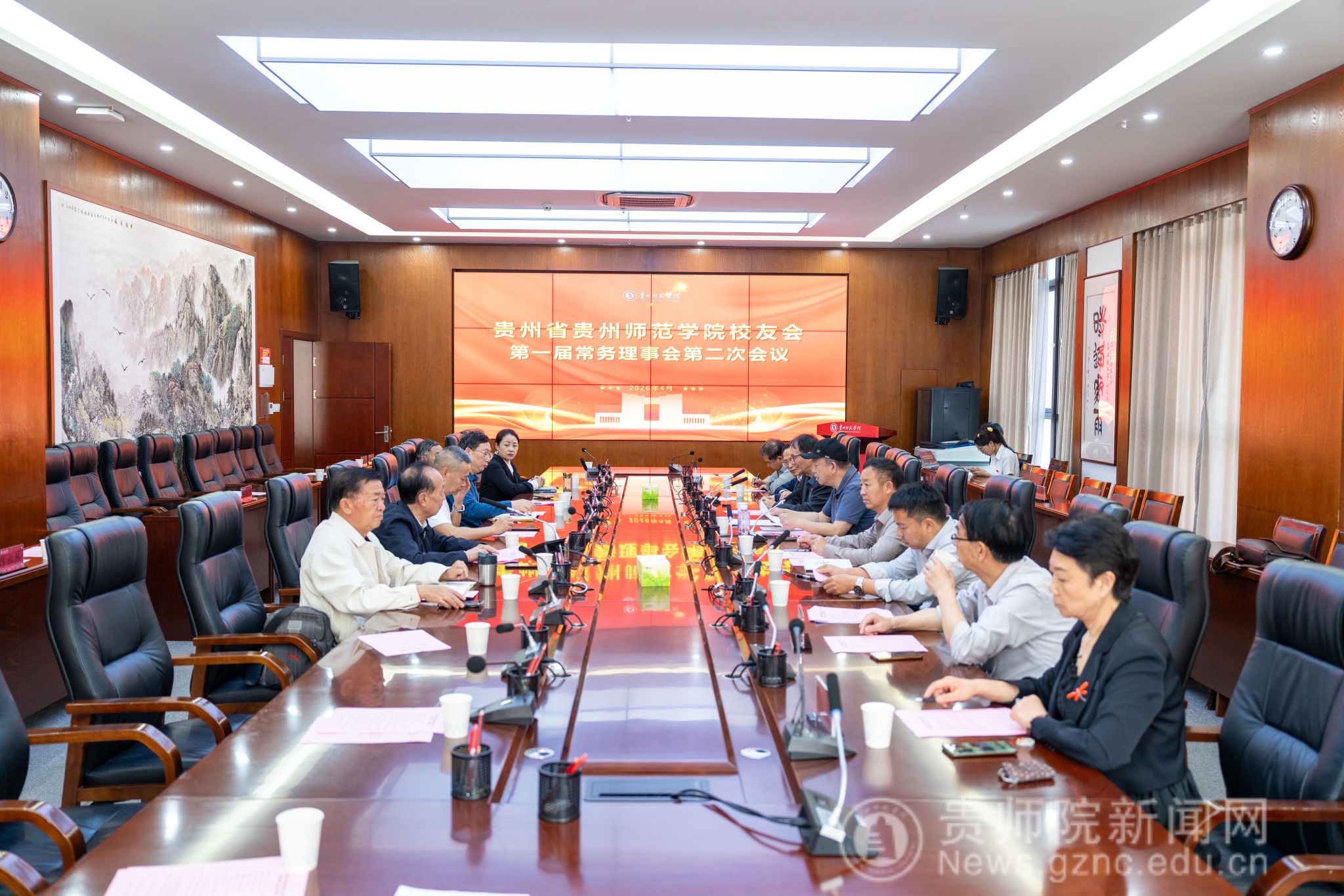 理事会会议开始,副会长吴俊、肖开玉、李朝纲分别领学习近平总书记在中共中央政治局民主生活会上的重要讲话精神、中央党的建设工作领导小组会议精神及习近平总书记考察贵州重要讲话精神。会议听取了2025年度工作总结与2026年工作计划汇报,审议通过了校友会管理制度,研究了毕节联络处年度计划及文学与传媒学院、数学与大数据学院校友分会申请,表决通过增补会员、理事及调整常务理事、副会长人选。