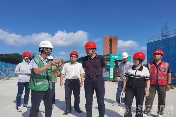 本网讯 8月6日上午,校党委书记石培新、校长韦维、校党委副书记龙健一行,到新材料与人工智能产学研实训基地施工现场调研施工进展情况,党政办、基建处、化材学院、施工单位、监理单位、审计单位相关负责人参加。