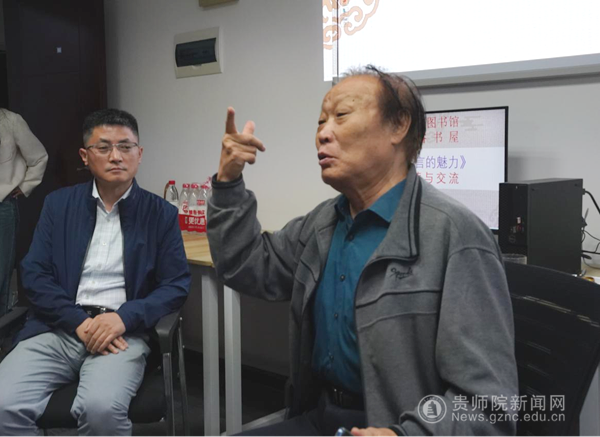 本网讯 5月28日下午,图书馆“方谷书屋”举办了一场别开生面的图书导读与交流活动。学院终身教授周复刚先生向图书馆捐赠了20册《教师语言的魅力》供同学们借阅,并以79岁高龄,亲自作为主讲人,为到场的三十余位同学分享了他从教五十多年来对于教师语言魅力的理解。导读交流活动由图书馆熊近宏主持。