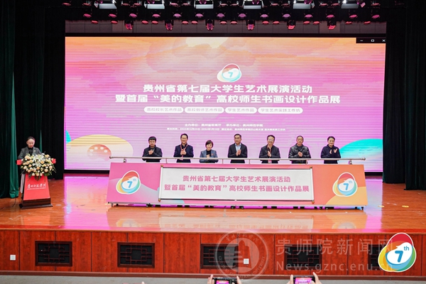 本网讯 12月25日下午,贵州省第七届大学生艺术展演活动暨首届“美的教育”高校师生书画设计作品展在我校开幕。