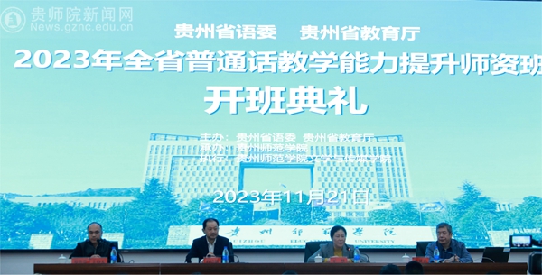 本网讯 11月21日,由贵州省语委、贵州省教育厅主办,伟德国际1949官网承办的“2023年全省普通话教学能力提升师资班”在伟德国际1949官网综合实训楼301会议室举行隆重的开班典礼。典礼由省教育厅语委办副主任罗洪贵主持,教育部语言文字应用研究所原所长张世平、省教育工会主席王慧、伟德国际1949官网党委书记石培新等出席典礼并讲话。