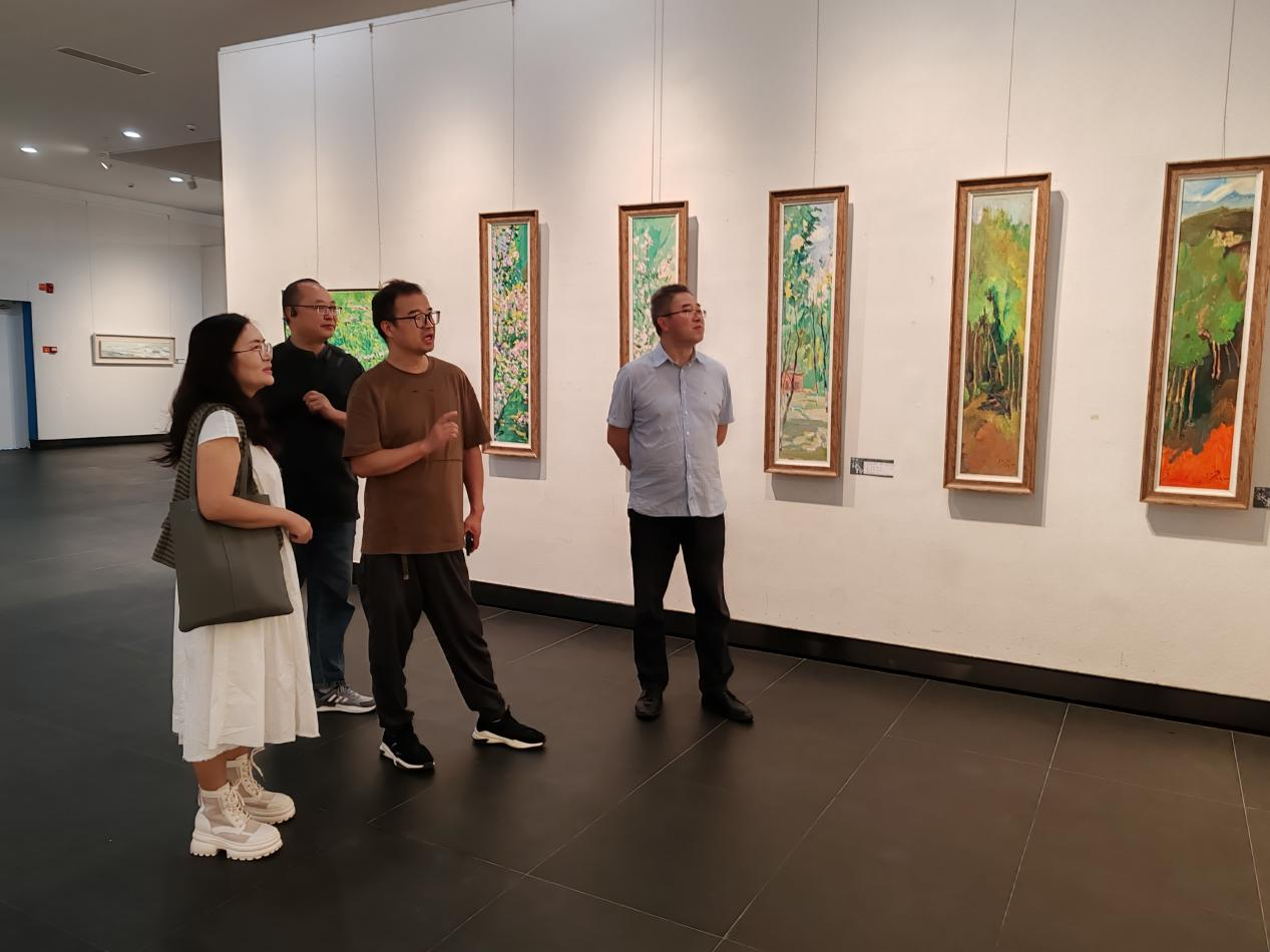 美术馆党总支书记陈顺祥、副馆长刘一意、典藏与展陈部副主任傅斌观看展览