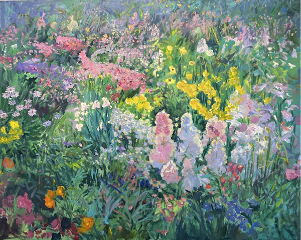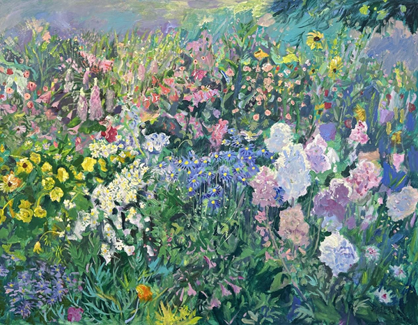 彭天朗,从对二位艺术家近二十年的梳理,从二十年前,钱理群作为学术主持的展览,开始与廖江华结缘,后来有有精神之力诗歌与艺术活动的交集,从其作品分析与结合其求学经历来看,他早期的风格受到俄罗斯留学归来的刘力教授的影响,后来在其近两年来的教学示范中又有所体现,在早期还受到刘小东、弗洛伊德的影响,以写生人像与场景结合,是以现实主义的观者在观望这个世界,到后来到在中国艺术研究院读研,在面对中国诸多的油画流派,他吸收了丁方教授的机具精神的表现主义风格,在技法的呈现上有较强的油画肌理的运用,画面的张力、神秘感与崇高感。在到国家艺术基金图书插画人才的培过程中,他进一步完成浪漫诗意的表达,就有了《寻找自己》《理想》《自由》《遨游》等一批画,在德国获得的全球插画奖荣誉提名奖,今天展厅的《时间之盒》是该风格的进一步升级。而现在的大山大水系列是集前几种风格的综合体现,有种肇于自然而又造于自然的审美境界的提升。郑超文的老师的绘画主线清晰,对花的创作始终如一,画的表现语言的呈现更加纯粹。希望二位画家艺术创作越来越好,多出精品力作。