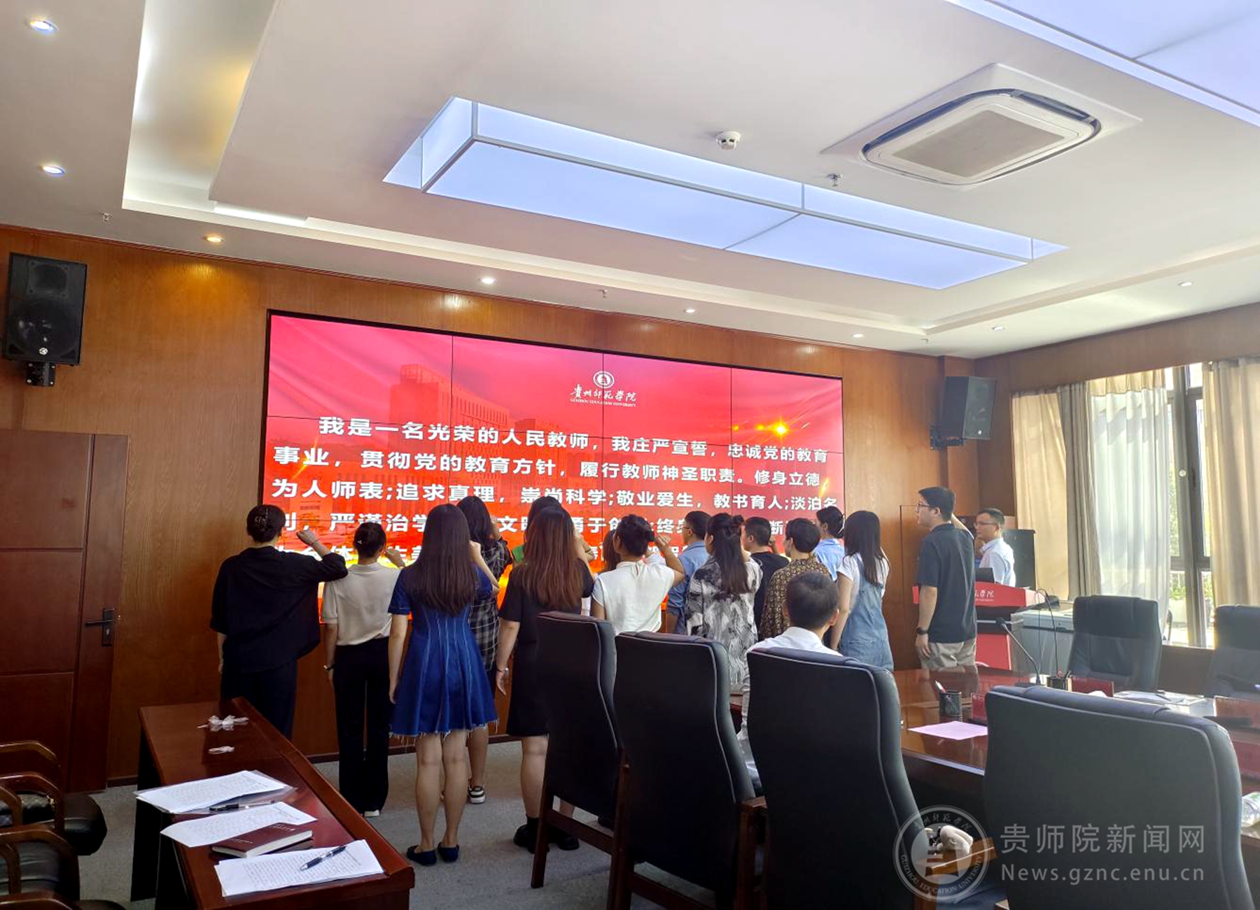 随后,历史与档案学院党委书记吴靖霞代表二级用人单位讲话,提出了希望和要求:一是要树立使命感、责任感,要热爱教育事业;二是要不断学习、更新知识,树立终身学习的理念;三是要关爱学生、关注学生的心理和情感;四是要谨记自己的教师身份,树立良好的教师形象,用师德规范自身言行。