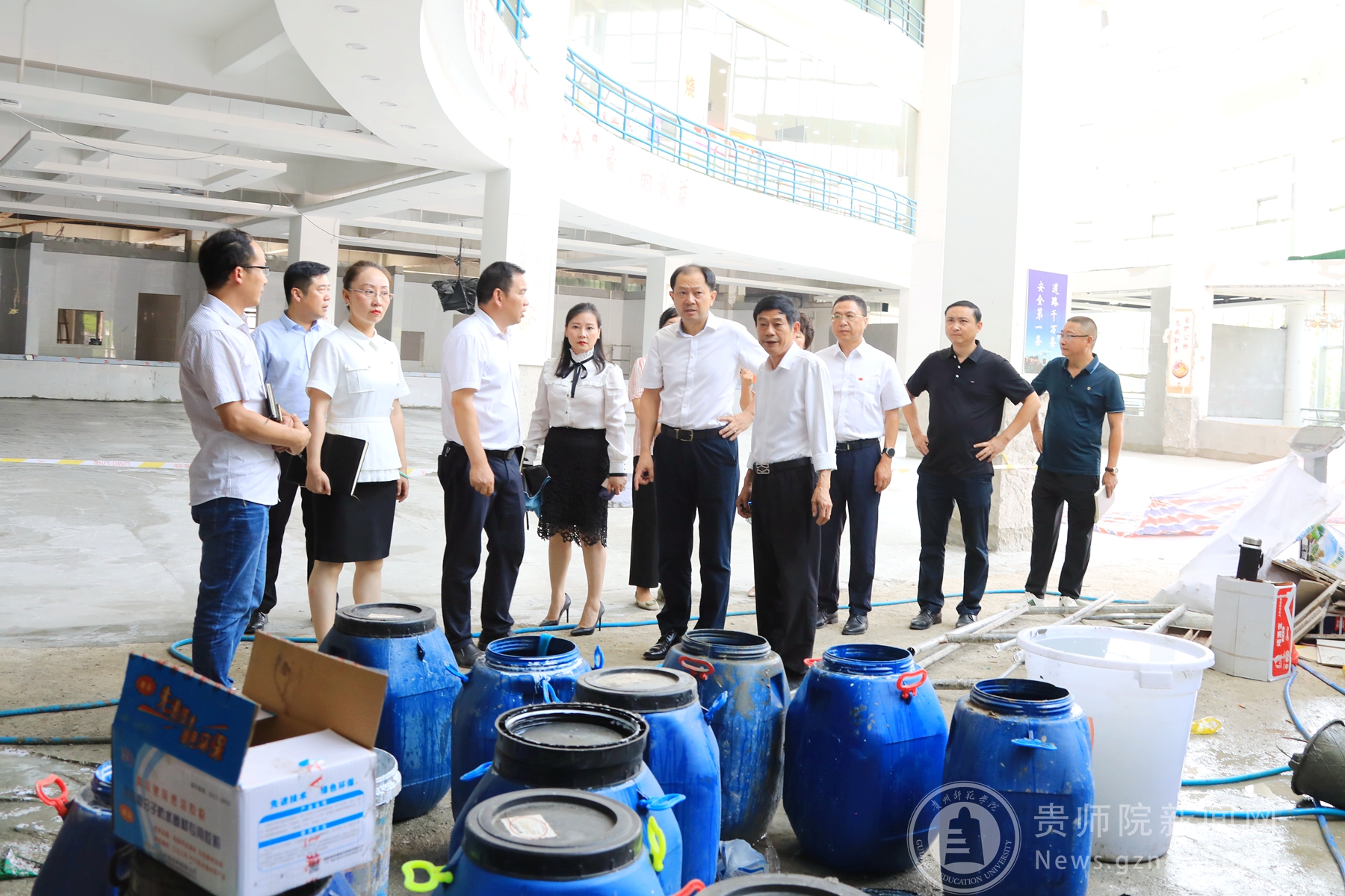 本网讯 8月20日,校党委书记石培新,校党委委员、副校长邹晓青,校党委委员、副校长任洁,校党委委员、纪委书记韩兵兵先后到感恩食府、爱心食府、学生公寓项目建设现场等地进行检查指导,听取后勤处相关负责同志就食堂翻新改造、餐饮保障、学生公寓整改项目推进情况汇报。