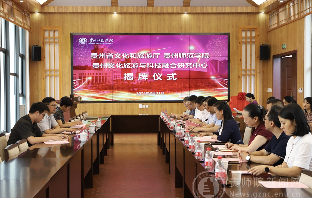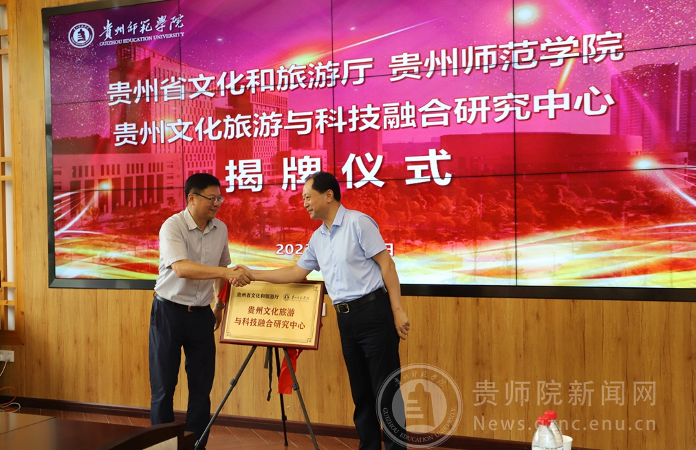 会上,省文化和旅游厅党组成员、副厅长袁伟与校党委书记石培新共同为“贵州文化旅游与科技融合研究中心”揭牌。