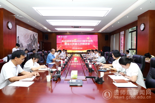 本网讯 6月30日,我校2023届毕业生就业工作第三次推进会在信息楼二楼会议室召开。校党委副书记熊世桓,校党委委员、副校长邹晓青出席会议。会议由校党委委员、副校长任洁主持。