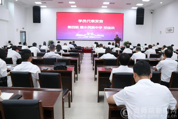 首先,由四位学员代表作结业汇报发言。培训班班长、贵阳市清华中学校长夏江表示本次校长任职资格培训班学习收获了知识、收获了友谊,尤其是在跟岗实践过程当中更是受益匪浅;惠水民族中学副校长邓佳洪认为在这段时间的学习过程当中,深刻领悟到了新时期校长必须具备的一些素质,同时也看到了教育发展的辉煌前景;独山高级中学副校长陈大蛟带领大家回顾了为期15天的培训生活,提到了小组合作的巨大团队力量以及感受到了校长同学之间相互学习,相互帮助的情谊;安顺民族中学副校长谢辉表示通过学习对今后的工作有了深刻认识,学校的管理要以学生为中心,以人为本,要抓队伍促发展,抓管理提质量。