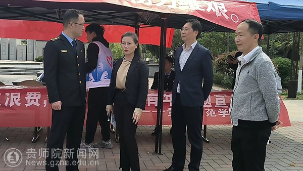 本网讯 为进一步贯彻落实习近平总书记关于“坚决制止餐饮浪费行为”等一系列重要指示批示精神,践行党的二十大报告“在全社会弘扬勤俭节约”的重要要求,积极推进学生会“我为同学做件事”活动深入开展。4月13日,校学生会协助乌当区市场监督管理局、校后勤处共同开展了“制止饮食浪费,争做“粮”好青年”的主题宣传活动。校党委委员、副校长邹晓青莅临活动现场指导,校后勤处处长赵刚、副处长高强、校团委副书记伍玲婧,乌当区市场监督管理局党委委员、检验检测中心主任李旭东、食品科科长王尔斌及高新分局局长张悟出席活动。