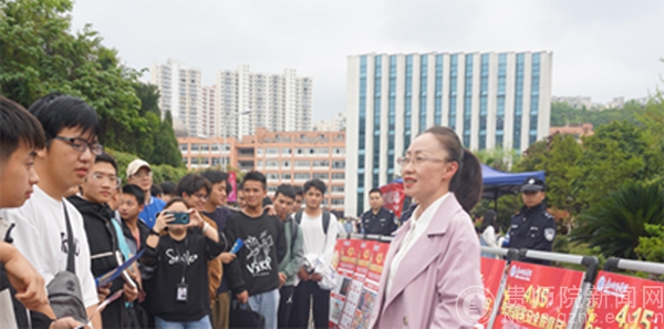 本网讯 为贯彻落实《省教育厅办公室关于组织开展全省大中小学2023年国家安全教育日活动的通知》文件要求,进一步深化平安校园建设,全面提升全校师生的国家安全意识,自觉履行维护国家安全、保守国家秘密的义务,4月14日上午,伟德国际1949官网联合贵阳市公安局乌当分局高新路派出所、中国工商银行乌当支行开展了主题为“贯彻总体国家安全观,增强全民国家安全防范意识和素养,夯实以新安全格局保障新发展格局的社会基础”的国家安全教育宣传活动。