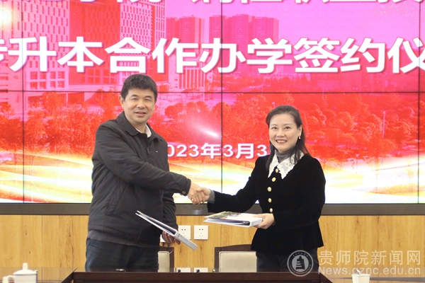 本网讯 3月3日上午,我校与铜仁职业技术学院“专升本”联合培养签约仪式在印山书院一楼山水讲堂举行。伟德国际1949官网党委委员、副校长邹晓青,铜仁职业技术学院党委副书记、院长项光亚参加了签约仪式。