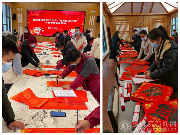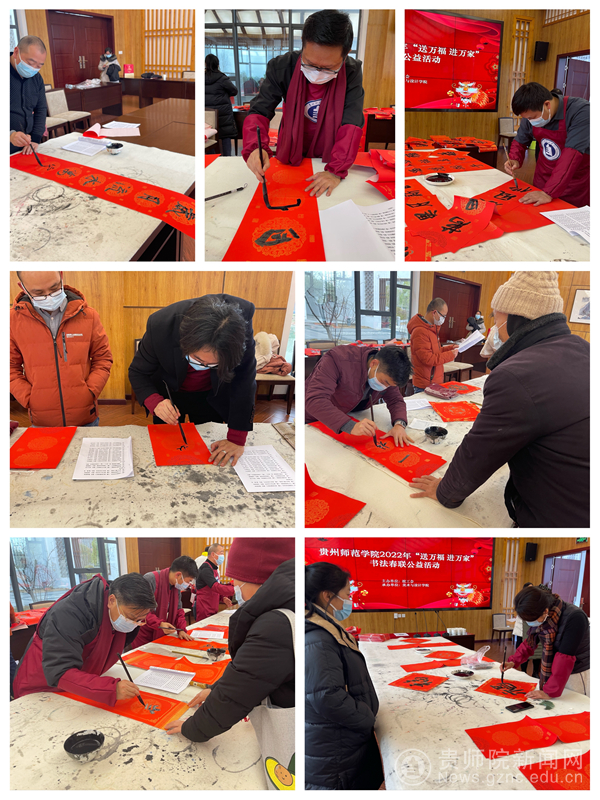 “纸墨飘香,春联送喜”我校书画艺术研究院的石含洲、安毅、谢安辉、杨光学、白瑞荣、李亦扬、杨辉等七位书画家以饱满的热情,在现场挥洒笔墨,一幅幅字形不一,风格迥异,写满祝福的春联跃然纸上,即喜庆又充满福气。按照疫情防控相关要求,分批入场参加活动的教职工及离退休老师们拿到书画家们赠送的春联、福字后,都喜笑颜开,在感受喜庆氛围的同时也体会到了中国书法传统文化的魅力,现场浓浓的新年气氛扑面而来。