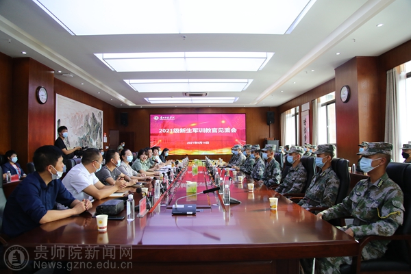 本网讯 9月16日,我校在信息楼二楼会议室召开了2021级新生军训教官见面会,贵阳市乌当区人民武装部一行、我校军训团团长副校长熊世桓,军训团领导学工部部长刘红玲、教务处处长邓琴、后勤处处长赵刚、保卫处处长蒋江南,各营政治教导员,学校人民武装部全体人员参加了会议,见面会由校人武部副部长王珏主持。