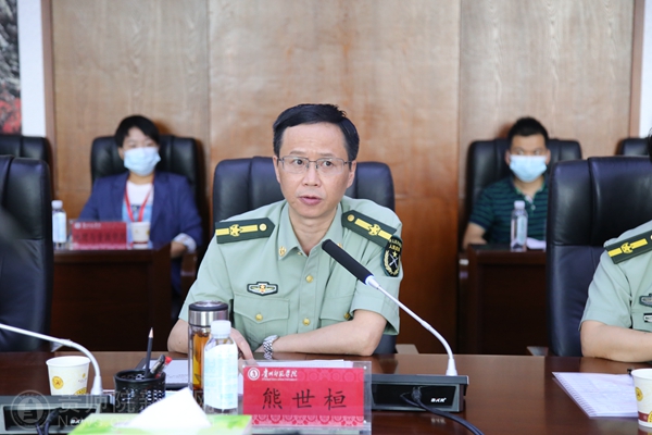 熊世桓对乌当区人武部一行表示欢迎,并向乌当区人武部长期以来对我校工作的支持表示了感谢。随后,熊世桓对2021级新生军训工作进行了提出了三点要求。第一,希望各个有关部门高度重视、加强配合、齐抓共管,合力做好军训工作,同时一定要做好疫情防控工作,学生安全工作,确保军事训练正常进行。第二,希望我校退役学生教官与乌当区人武部教官相互配合,以良好的军人形象带领学生们投入军训,在军训过程中,坚持以人为本,做到宽严相济,牢固树立安全第一的思想。第三,军训团的所有领导及干部,要深入连队,及时了解学生的思想动态,身体状况和生活困难,要耐心细致地帮助学生解决思想上和生活上的困难问题,切实做好学生工作,营指导员要加强对训练过程当中的管理和训练场地的巡视工作,积极参与到学生军训中来,协助教官完成军训任务,充分调动学生训练积极性。熊世桓强调,全体教官和老师对本次军训工作要做到全面负责、全程参与、全方位服务。