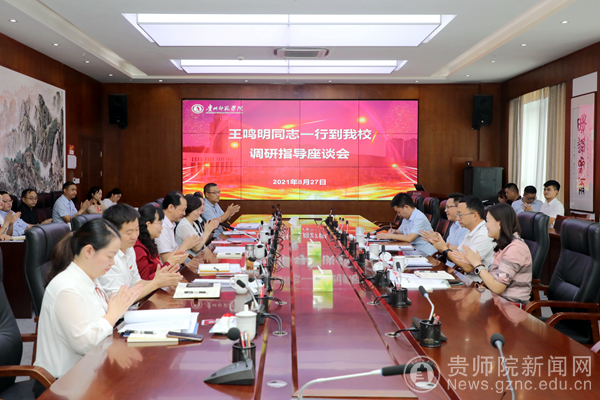 本网讯 8月27日,乌当区区委书记王鸣明莅临我校调研座谈,座谈会在信息楼二楼会议室召开,乌当区副区长王飞、乌当区区委办副主任刘承俊、乌当区教育局局长梁艳参加座谈会。校党委书记石培新、校长韦维、校党委副书记郭文、副校长邹晓青等在家校领导及党委委员出席座谈会,座谈会由石培新主持。