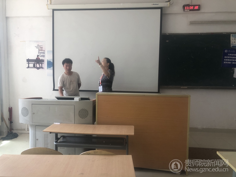 技术人员对教室多媒体进行检查