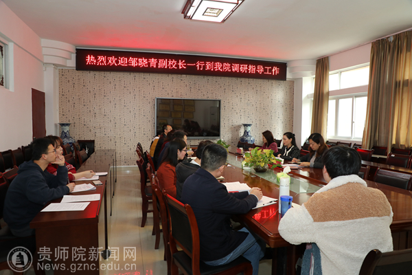 邹晓青听取了汇报,对文传学院在留学生教学工作中所付出的努力给予了肯定,并根据调研情况提出了指导意见:第一,是要在思想上形成共识,强化主人翁意识,在疫情防控常态化的情况下,积极思考后疫情时代如何更好地发展国际教育,通过着力提高留学生教育质量,进一步加大我校教育对外开放的步伐。二是不断完善我校留学生工作中教学课程体系、文化育人体系、管理服务体系这“三个体系”的建设,办好具有贵州特色、师院特色的留学生教育。三是坚定信心,克服困难,根据学校实际情况,下一步将逐渐打通理顺留学生管理工作机制,相关部门、学院通力协作、积极沟通,逐步改善留学生的教学、生活环境,提高教学、后勤服务与管理质量,加速推动我校留学生教育工作进一步发展。
