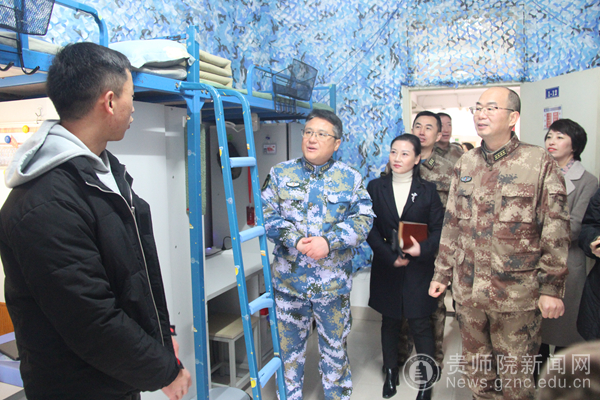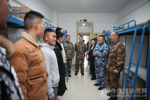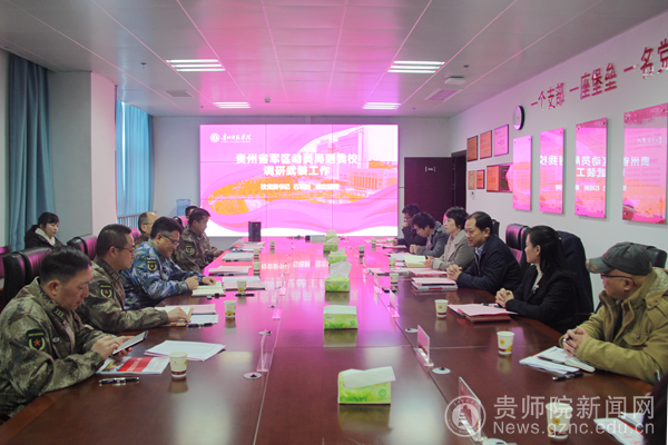 本网讯 12月17日上午,贵州省军区动员局局长、省征兵办主任隋圣陶,在贵阳市警备区政委王文建,乌当区武装部部长、政委等相关人员的陪同下到我校检查指导我校大学生征兵工作并召开座谈会。我校党委书记石培新,党委委员、副校长邹晓青出席了座谈会;学工部(武装部)、保卫处等部门人员,二级学院党委书记、辅导员代表参加了座谈会。本次座谈会由校党委委员、副校长邹晓青主持。