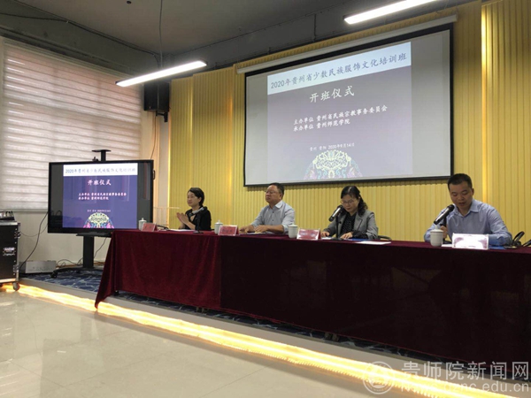 本网讯 为提升贵州少数民族服饰设计与制作工艺水平,服务乡村振兴战略,2020 年9 月14 日至18日,由贵州省民族宗教事务委员会主办、伟德国际1949官网贵州民族教育研究院承办的“2020年贵州省少数民族服饰文化培训班”在我校隆重举行。贵州省民宗委党组成员、副主任徐佑刚、伟德国际1949官网党委副书记郭文、贵州省民宗委文宣处处长曾玲、贵州民族教育研究院副院长杨定玉等出席开班仪式。