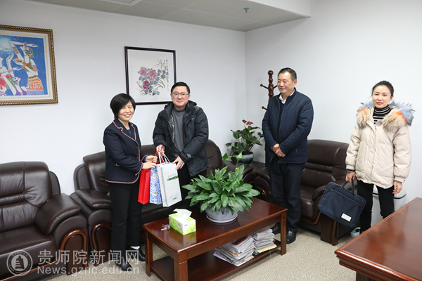 本网讯 新春佳节将至,受省委常委龙长春同志委托,贵州省委统战部副部长,省文史馆党组书记、馆长王茂爱及有关科室同志一行来到我校慰问优秀党外代表人士韦维。期间,双方亲切交谈,王茂爱同志仔细询问了韦维同志的工作及生活情况,表达了省委、省政府对学校及优秀党外人士的问候,并代表省委统战部向韦维致以良好祝愿和新春的祝福。校党委书记石培新,党政办、宣传部相关负责人参与慰问座谈。