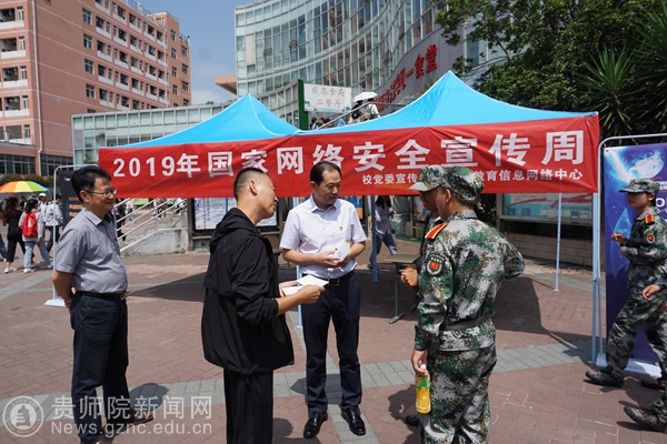 在活动现场,工作人员通过展板讲解、资料发放、咨询解答等形式,为师生普及网络安全知识,帮助师生提高个人信息安全风险意识、防范意识及法律意识,学习实用防范措施,吸引了大批师生驻足了解。校党委书记石培新、纪委书记邬卫东亲临活动现场指导,石培新还号召广大学子认真学习领会习近平总书记提出的网络强国战略和对国家网络安全宣传周的重要指示精神,不断提高自身的道德修养和网络安全防护能力,做网络安全的忠实倡导者、网络安全的切实维护者、网络文明的积极推动者。