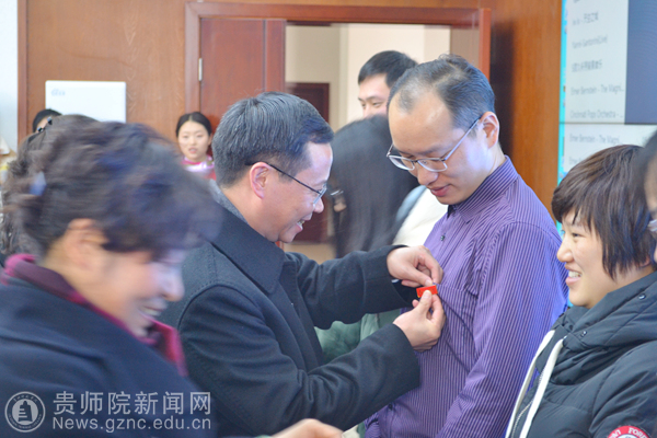校领导及二级单位负责人为新进人员佩戴校徽(一)