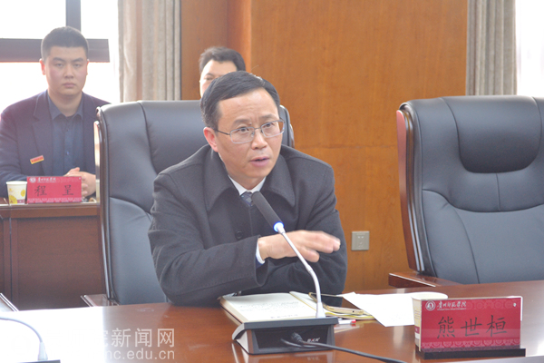 熊世桓祝贺大家通过激烈的竞争和严格的遴选进入贵师院。并对新进人员提出了几点要求,一是要有明确的目标和永不言弃的斗志。要有“弱鸟先飞”的意识,“滴水穿石”的精神,秉承“为人师表”的校训。二是要有合作共识、团结协作的意识。三是要有坚持学习的习惯,做学生的榜样。要不断更新知识,善于学习和总结,做好教师的本职工作。