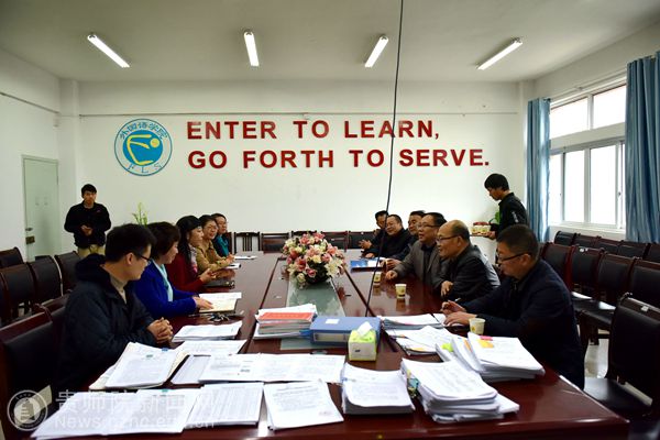 校党委书记石培新、副校长令狐荣锋率、保卫处处长蒋江南及保卫处工作人员迎接检查组的到来。党政办、教务处、后勤处、学工部、网络中心、团委、心理咨询中心、统战部、保卫处、外国语学院、商学院、旅游文化学院、物理与电子科学学院主要负责人参加了汇报会。