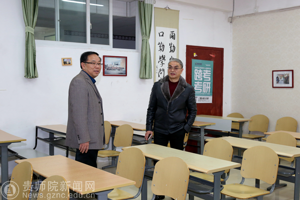 本网讯 11月20日下午,乌当区区委教育工委副书记李波一行到我校检查学校配合贵阳市文明城市巩固提升相关工作开展情况暨高校文明校园建设情况,副校长令狐荣锋,党政办、宣传部、后勤处、保卫处、航天物业等部门负责人陪同。