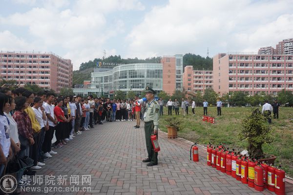 本网讯 为创建平安文明校园,使广大新生提高消防安全意识,9月25日,我校在鉴湖旁边开展消防培训及实战演练活动,校领导令狐荣锋到现场指导工作,保卫处处长蒋江南、学工部部长韩宝银、保卫处全体人员、高新路派出所民警、物管公司、18级新生代表参加培训及演练活动。本次活动特邀乌当区消防大队参谋曹徽为师生进行消防安全知识讲解。