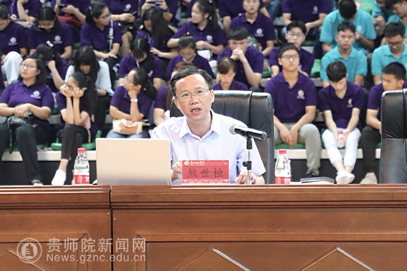 教务处处长熊世桓对学籍、学年、学历证书注册以及学生在大学期间所有关于选课、转专业、学籍异动以及大学英语四六级、中小学教师资格证考试等国家级考试进行了全面细致的介绍。
