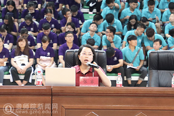 学工部学生管理科邹万梅科长从学生管理规定、学生违纪处分办法、学生奖助学金发放比例、文明礼仪等方面系统地为大一新生解读了我校有关学生管理的系列规定,希望能够帮助新生了解大学生的权利和义务,端正学习态度,明确努力方向,提高组织纪律观念,学有所获,不虚度光阴。