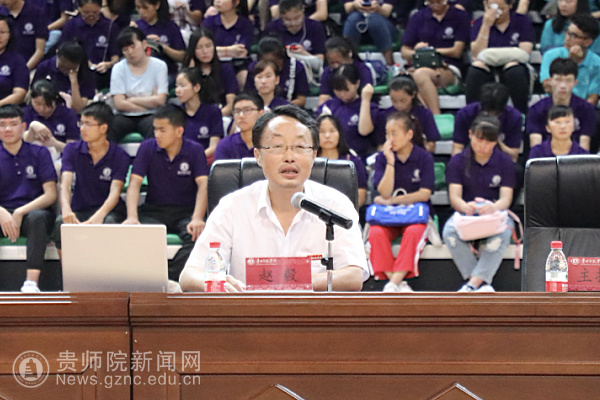 后勤处处长赵毅为大一新生做了我校有关医保、校园公共卫生等方面的专题教育