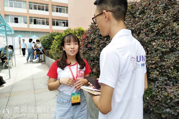 余雨雪是数学与大数据学院的一名学生,第二次参与迎新工作。相较于上一年的“被安排”,今年她则成了迎新工作的组织者之一。这次迎新她主要负责组织和安排人员,协调众人着手做好所有的前期工作,以便其他部门帮助新生顺利入学。在谈到为什么会选择迎新时,她说自己是第二次迎新,积累了相关的经验,能较好的带领和协助其他初次参与工作的新人完成任务。余雨雪告诉我们,今年的迎新内容有所变动,在我校官方微信公众号上有着详尽的实时报道。校党委书记石培新等校领导也亲临现场慰问志愿者和指导工作。